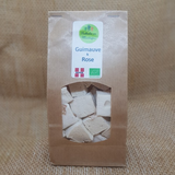Les chamallow de notre enfance, mais une version artisanale qui nous fait découvrir des saveurs inédites grâce à mes épices et fleurs bio. Avec la Guimauve & Rose, découvrez la douceur fleurie de la rose ! La guimauve se conserve moelleuse pendant quelques semaines? Ingrédients : sucre roux*, miel d?acacia de Savoie*, eau, gélatine*, Anis de ma ferme*, fécule de maïs*, citron*. (* ingrédients issus de l?agriculture Bio) Se conserve quelques semaines au frais et sec. FR BIO 15