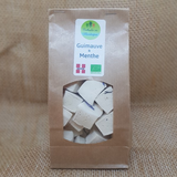 Les chamallow de notre enfance, mais une version artisanale qui nous fait découvrir des saveurs intenses grâce à mes épices et fleurs bio. La guimauve se conserve moelleuse pendant quelques semaines. Ingrédients : sucre roux*, miel de Savoie*, eau, gélatine*, Menthe de ma ferme*, fécule de maïs*, citron*, pétale. (* ingrédients issus de l?agriculture Bio) Se conserve quelques semaines au frais et sec. FR BIO 15
